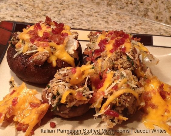 Italian Parmesan Stuffed Mushrooms with Bacon and Cheddar Cheese